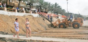 Solicitada por integrantes do trade e por comerciantes da orla, a implantação dos sacos reiniciou ontem após a baixa-mar e recomeça hoje. Segundo dados da Semopi, os sacos confeccionados pela empresa Big Bag medem 0,90 x 0,90 x 1,50cm e custam R$ 30 a unidade. O custo total apenas com os sacos pode chegar a R$ 28 mil. “Para afixação, é feita uma vala, permitindo que cerca de 50 centímetros dele fique enterrado, para assegurar a base de sustentação. Vamos fazer uma barreira de dez em dez sacos com fila dupla para servir de contenção e de sequeiro para quando for iniciado o serviço de reconstrução”, explica Caio.